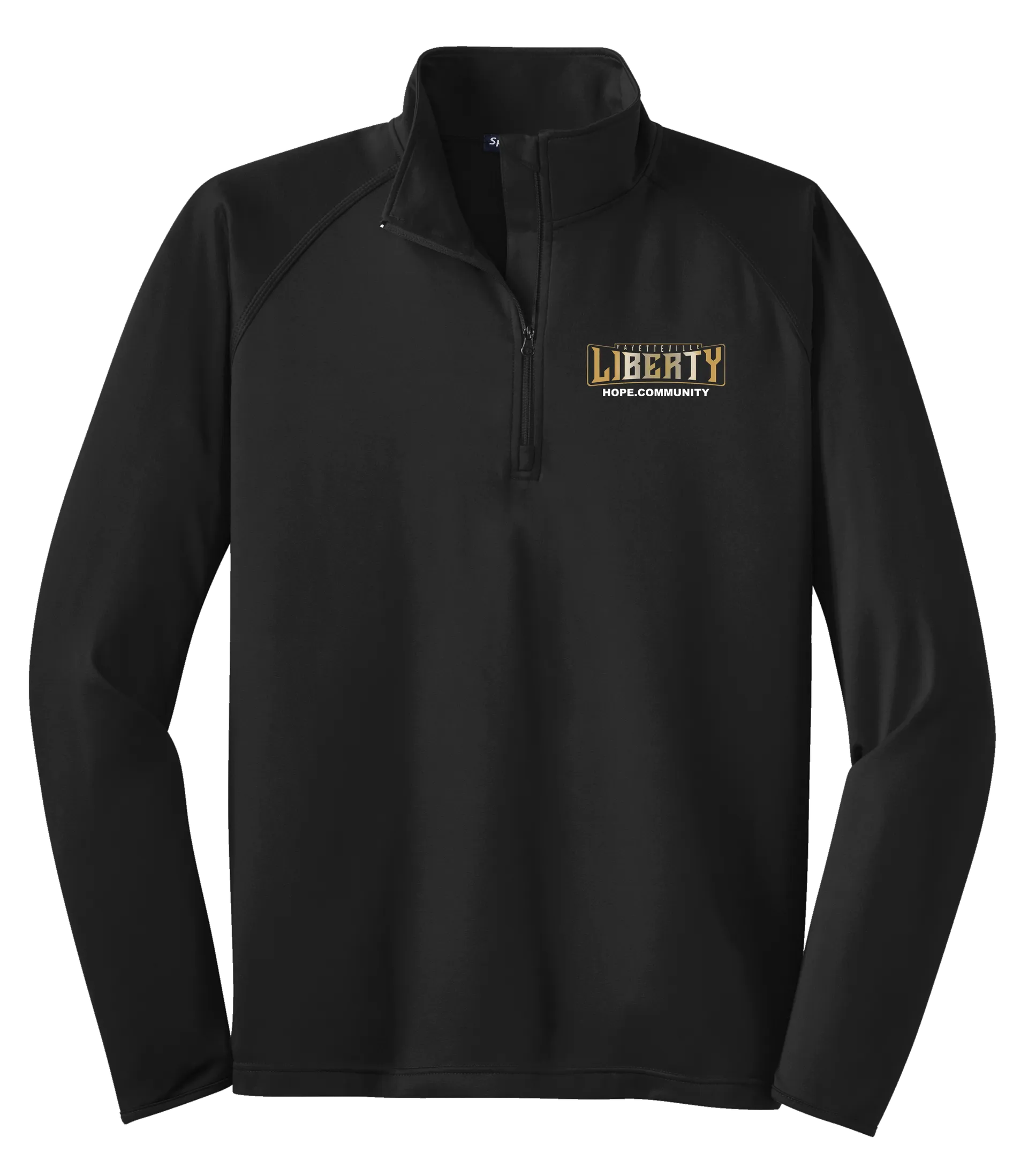 Layer up with purpose in the HOPE.COMMUNITY Liberty Quarter-Zip Pullover. Designed to move with you while making a statement, this athletic-style pullover is lightweight, breathable, and crafted with care. With the HOPE.COMMUNITY branding and Fayetteville Liberty logo stitched in unity, this piece stands for more than just style—it stands for awareness, impact, and community.